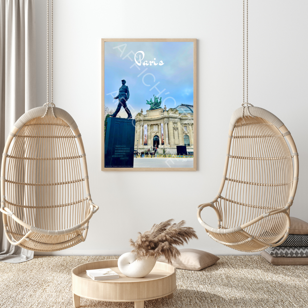 Face à la verrière monumentale, la silhouette du Général incarne l’élan de l’Histoire au cœur de Paris.
